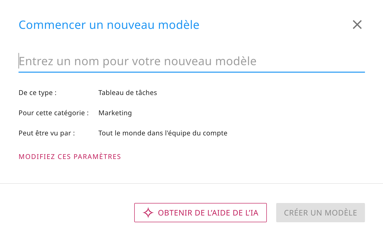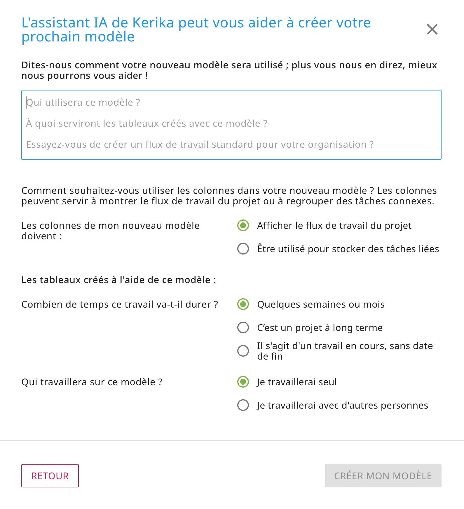 De même, vous avez désormais la possibilité de vous faire aider par l’IA de Kerika pour créer de nouveaux modèles :