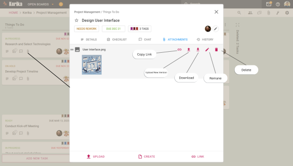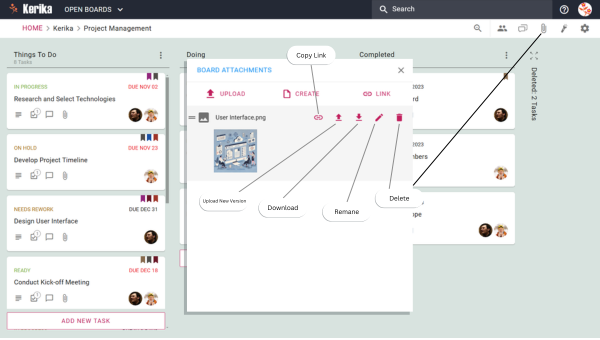 In Kerika, files can be shared in two main areas: Task Cards and Board Attachments. Each serves a specific purpose, ensuring your files are shared with the right people in the right context.